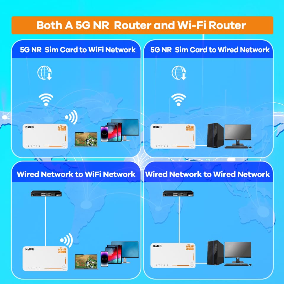 Einzelheiten: KuWFi 5G Router, 5G Router SIM-Karte, 5G eSIM mobiler WLAN Router, Keine SIM-Karte nötig, 5G LTE Router unterstützt 32 Geräte gleichzeitig, 2,5-Gbit/s-Port, Wi-Fi 6 AX3600, 4000mAh, Reise WLAN-Hotspot