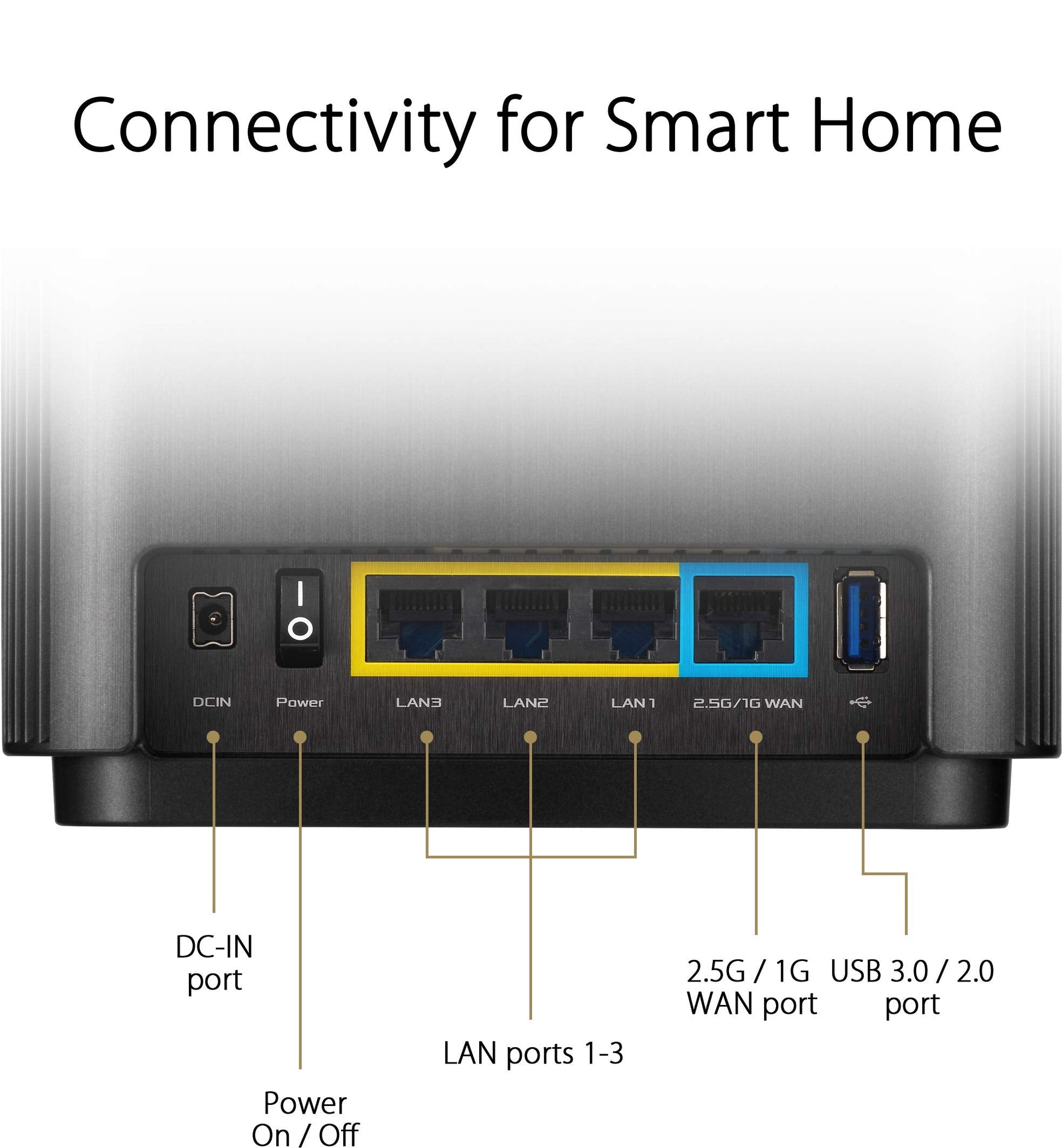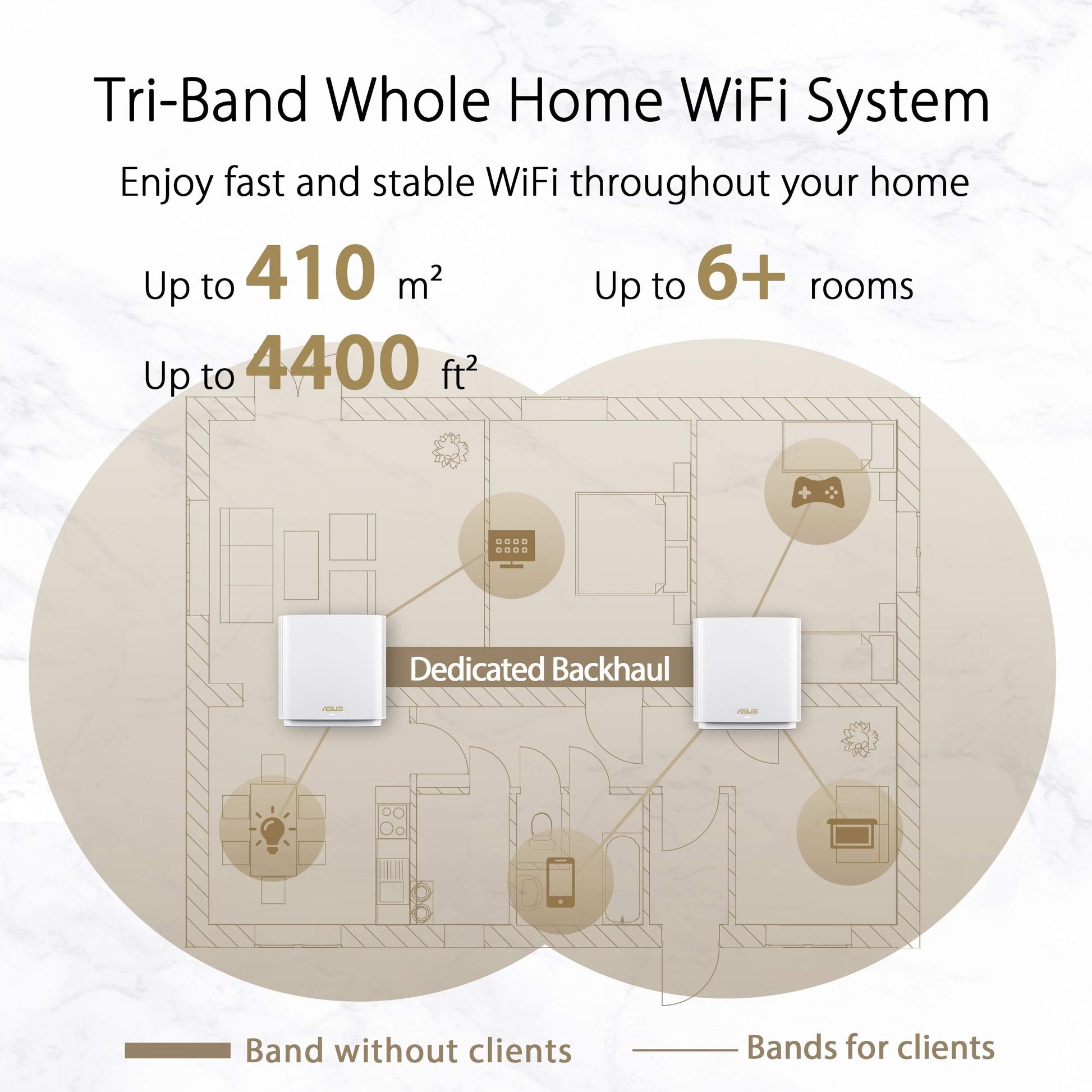 ASUS ZenWifi XT8 (2 Pack) – WiFi 6 Mesh Tri-Banda AX6600 (Reichweite über 550 m2, AiProtection mit TrendMicro Lebenszeit, 2, 5 Gigabit WAN/LAN Ports + 3 Gigabit-LAN-Ports, unterstützt AiMesh). Netzwerkstandard: IEEE 802.11b; IEEE 802.11g; IEEE 802.11ax; IPv4; IPv6