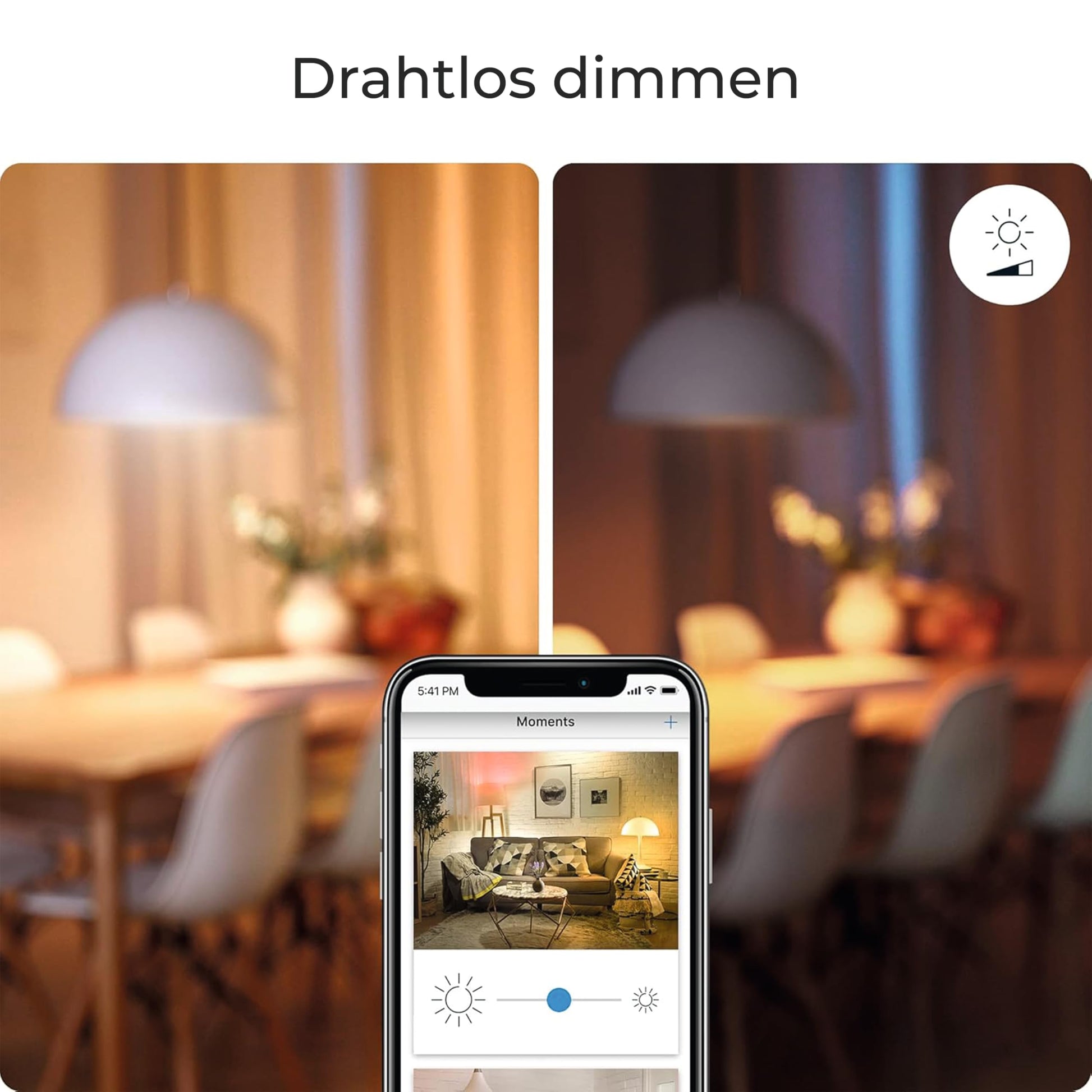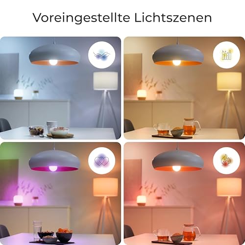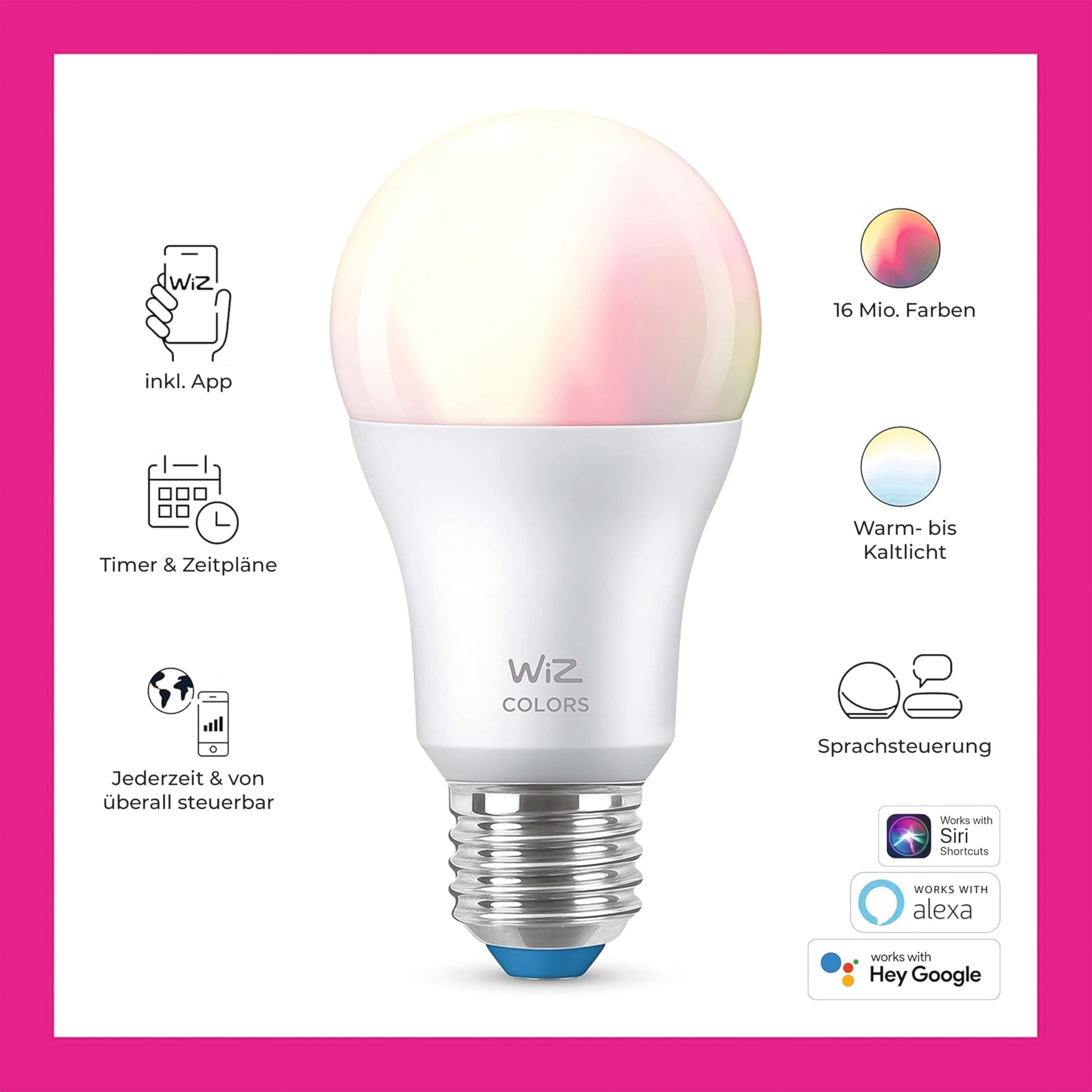 - WiZ LED-Lampe mit 16 Mio; farben & App-Steuerung- Die mitgelieferte WiZ E27 LED-Lampe sorgt für stimmungsvolle Beleuchtung – wähle aus Millionen Farben oder warm- bis kaltweißem Licht; einfach steuerbar per App, WLAN oder Sprachbefehl (zum Beispiel; alexa, Google)