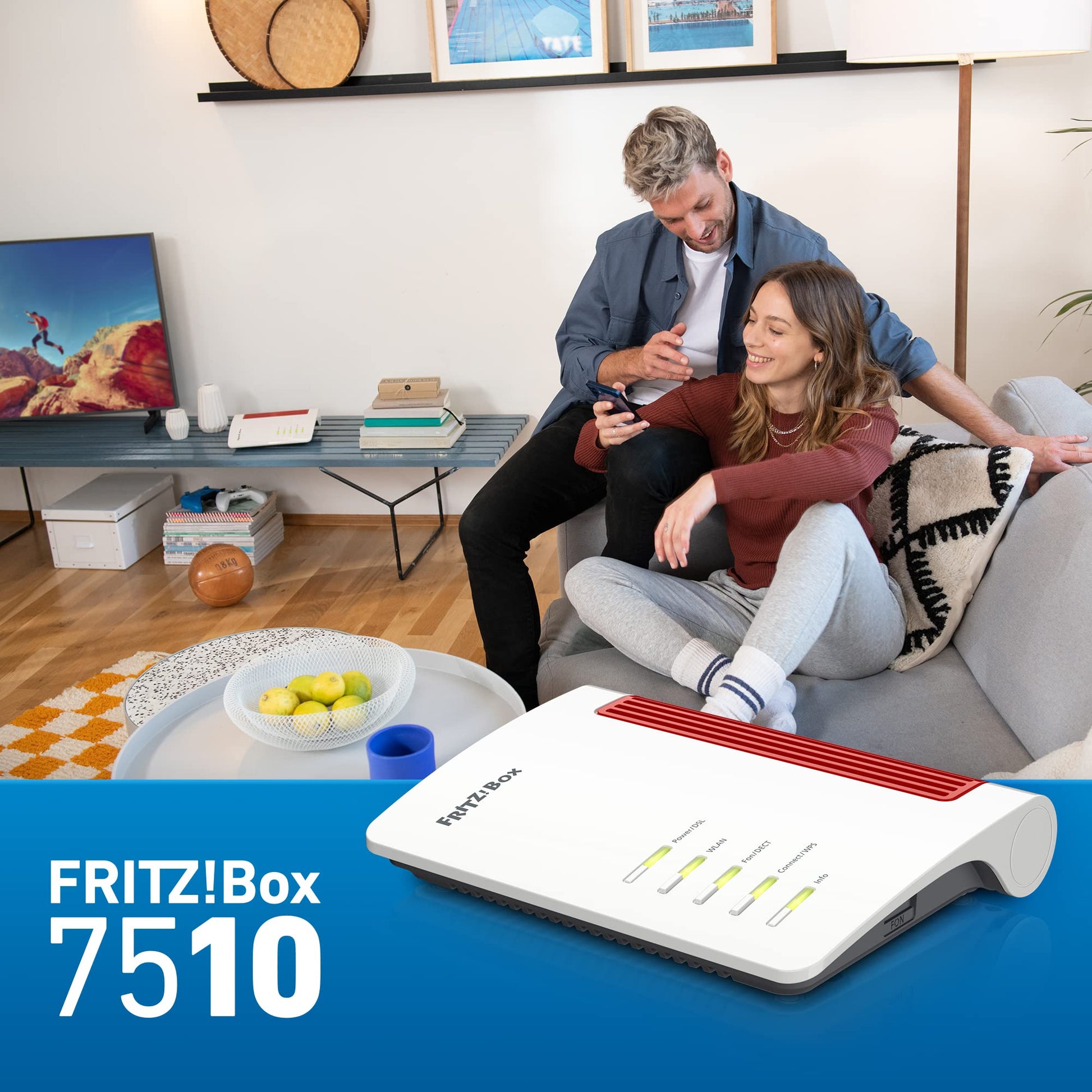 Mit der FRITZ!Box 7510 erhältst du eine zuverlässige, vielseitige und zukunftssichere Lösung für Internet, Telefonie und Heimnetz – alles in einem Gerät.