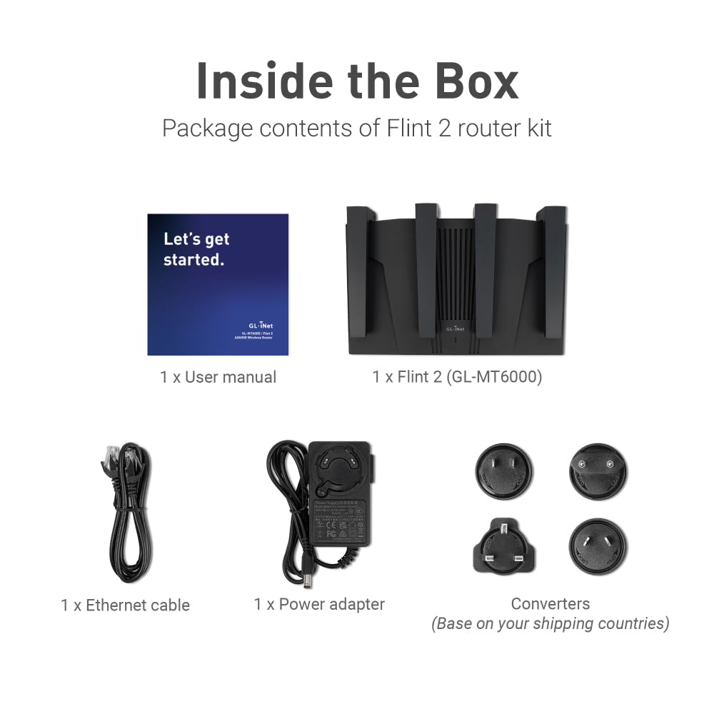 - 【Hochgeschwindigkeits-Gaming-Router】Dominieren Sie mit ununterbrochener Leistung des ultimativen MT6000-Gaming-Internet-Router, durch 8-Stream-Wi-Fi-6-Technologie. Der Flint 2 liefert atemberaubende Geschwindigkeiten und sorgt so für eine stabile und schnelle Verbindung bei intensiven Multiplayer-Kämpfen.