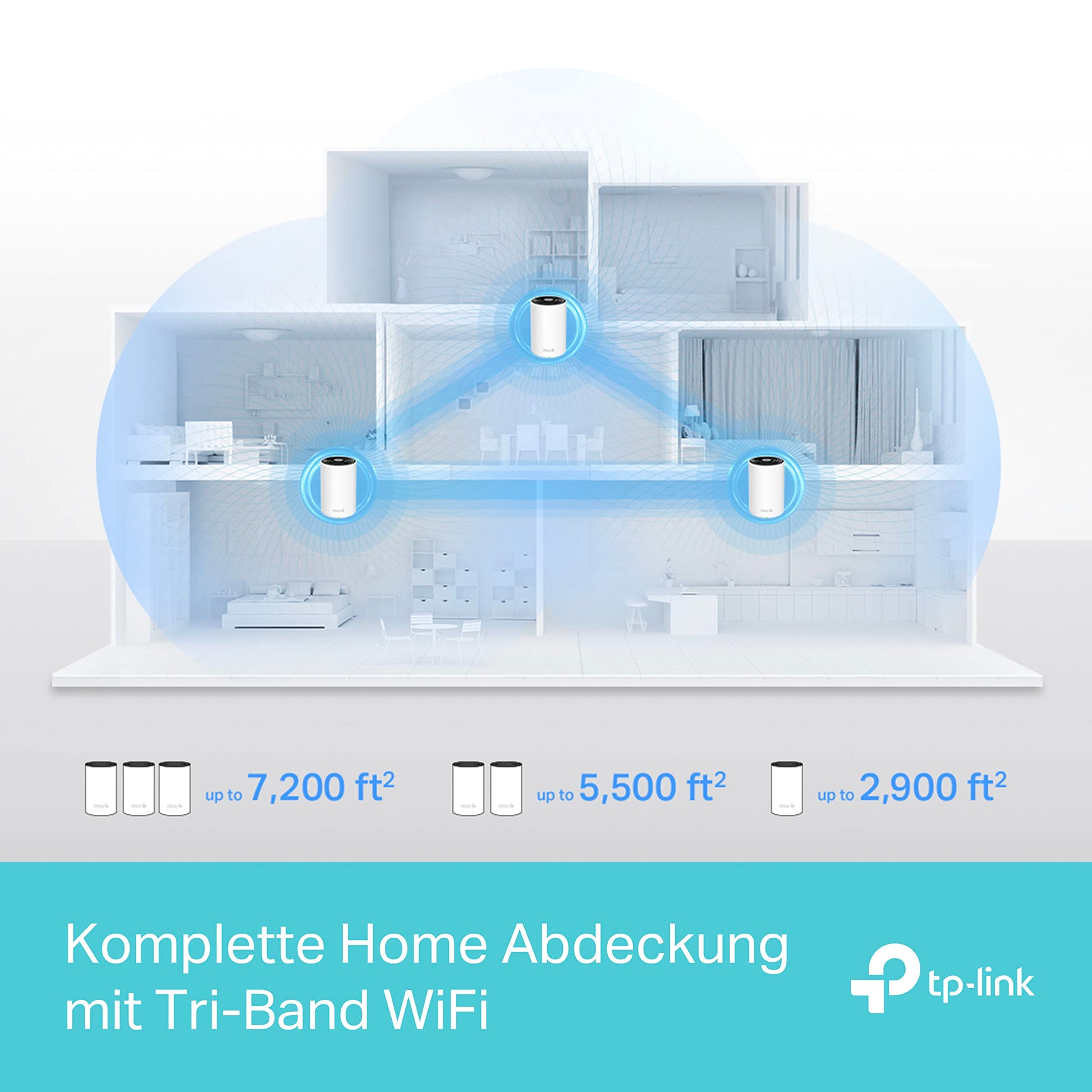 Einzelheiten: "TP-Link Mesh-Technologie: Eliminieren Sie Bereiche mit schwachem Signal mit einem einzigen Wi-Fi-Netzwerk, das jeden Winkel Ihres Hauses mit nahtlosem Roaming, adaptive Pfadauswahl und Selbstheilung abdeckt. Kein Suchen mehr nach einer stabilen Verbindung, egal ob im Keller, in der Garage oder im Garten.Echtes nahtloses Roaming:Deco-Einheiten arbeiten zusammen, um ein einheitliches Netzwerk mit einem einzigen Netzwerknamen zu bilden. Ihr Telefon oder Tablet verbindet sich automatisch mit dem schnellsten Deco, während Sie sich durch Ihr Zuhause bewegen. Das Umschalten dauert weniger als 0,3 Sekunden und ist glatt und unmerklich, wodurch ein wirklich nahtloses Online-Erlebnis entsteht; Adaptive Pfadauswahl: Die TP-Link Mesh-Technologie wählt dynamisch die beste Route und das beste Band für Ihre Verbindungen und Anwendungen aus und garantiert so ein schnelles Wi-Fi, egal wo Sie sich zu Hause befinden; Selbstheilung: Wenn ein Deco ein Problem hat, leitet das System die Daten automatisch über die anderen Decos um, um sicherzustellen, dass Sie online bleiben."