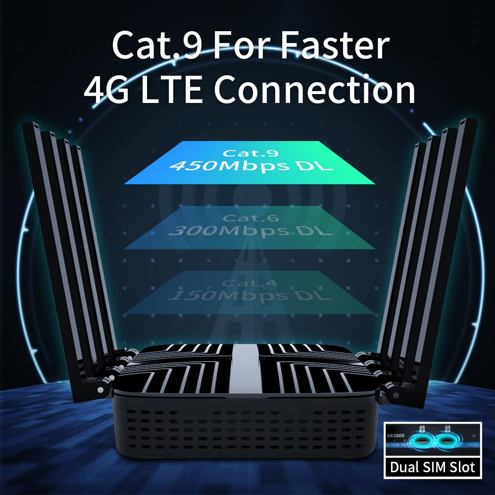 - 【Dual-SIM-Karte】Dual-SIM mit Single-Standby. Dual-SIM-Flexibilität zur Auswahl der stärkeren und schnelleren ISP-Verbindung und automatischem Failover. Kompatibel mit 4G LTE und 3G Netzwerken